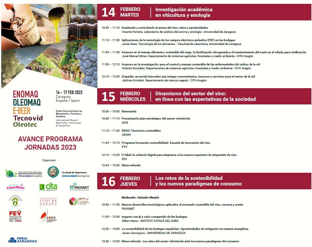 Fecha: días 14, 15 y 16 de febrero de 2023. Lugar: Zaragoza. Más información: jornadas-enomaq-2023
