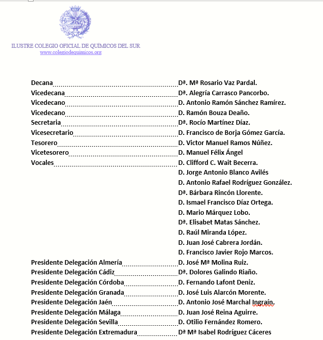 Dª. Mª del Rosario Vaz Pardal. D. Ramón Bouza Deaño Dª Alegría Carrasco Pancorbo Dª. Rocío Martínez Díaz D. Víctor Manuel Ramos Muñoz